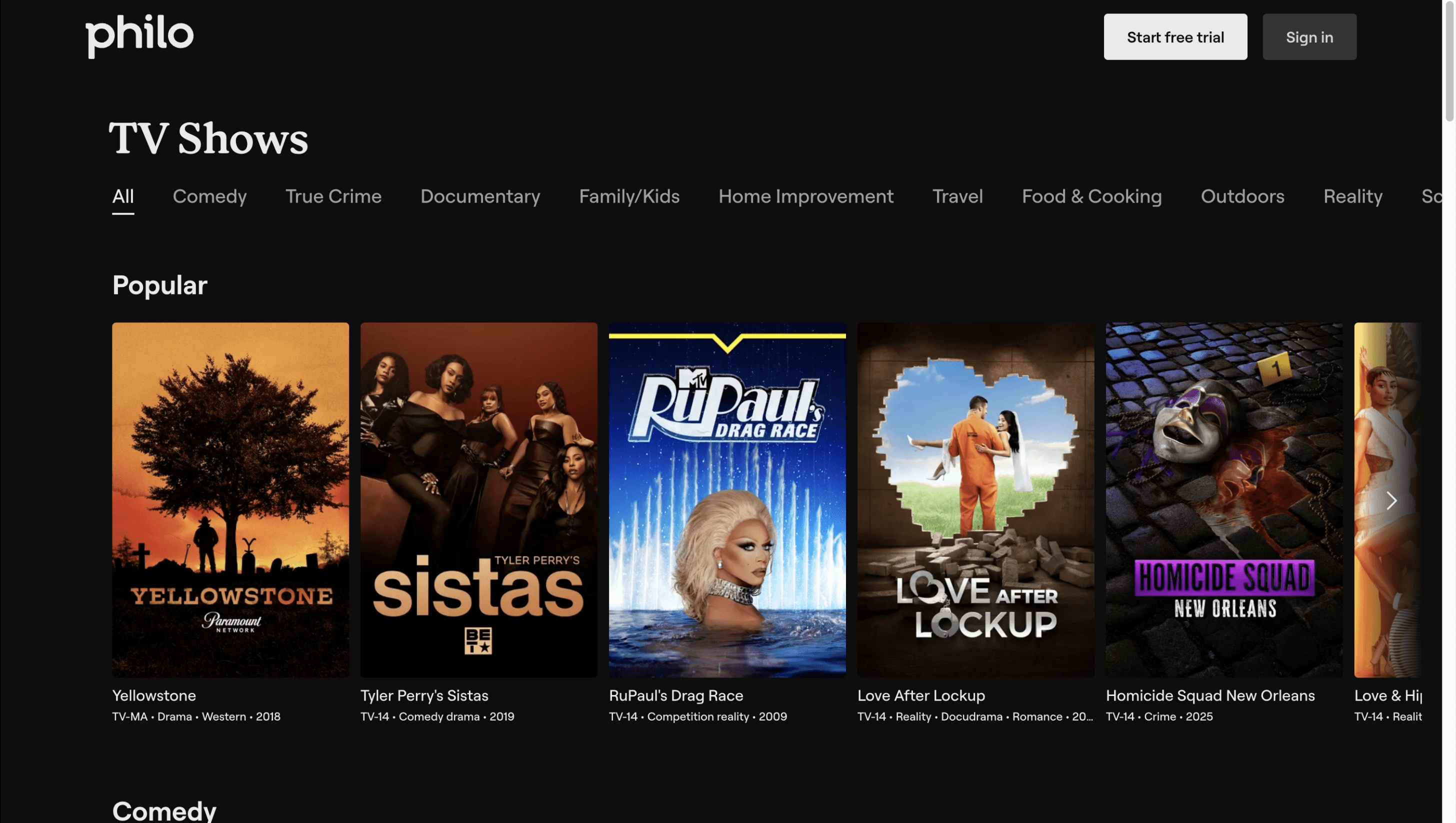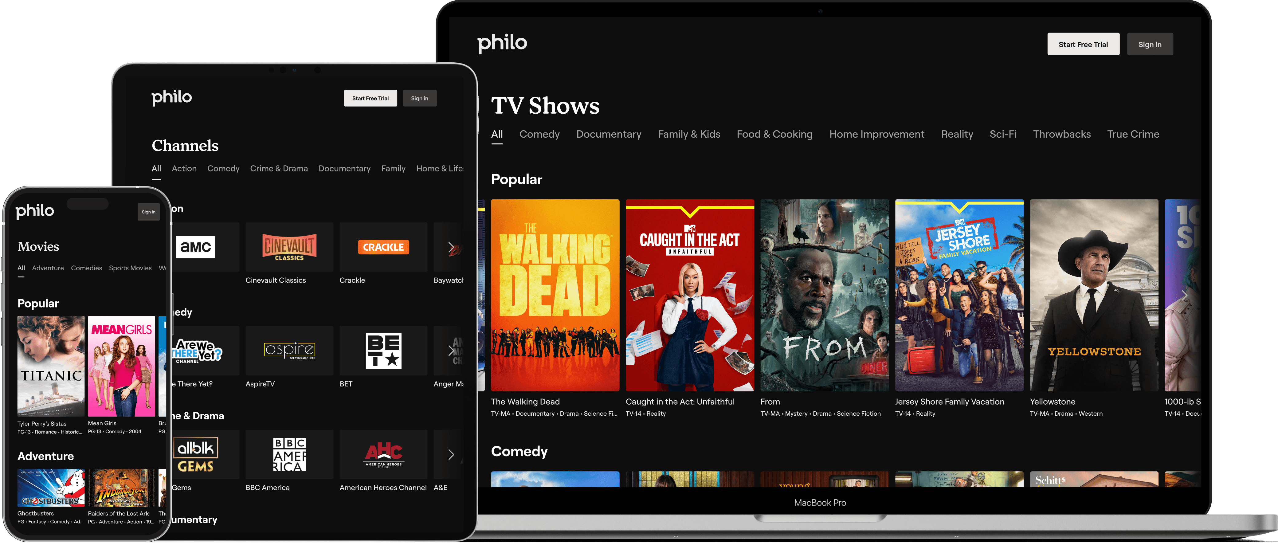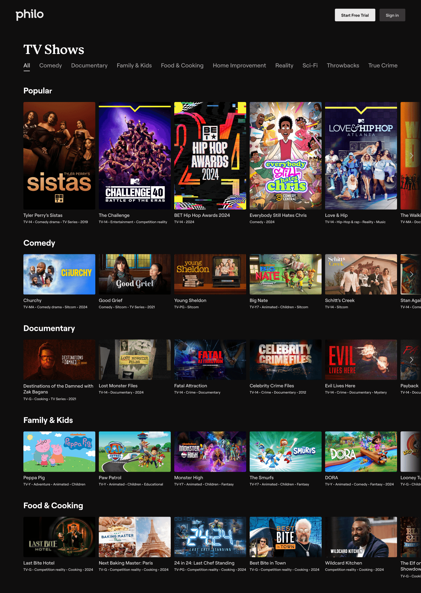 The new browsing pages give Philo’s catalog a public face for the first time. Prominent visuals and streamlined filtering make it easy to evaluate content across shows, movies, and channels. Each page is designed to build confidence and convert a browser to a subscriber.